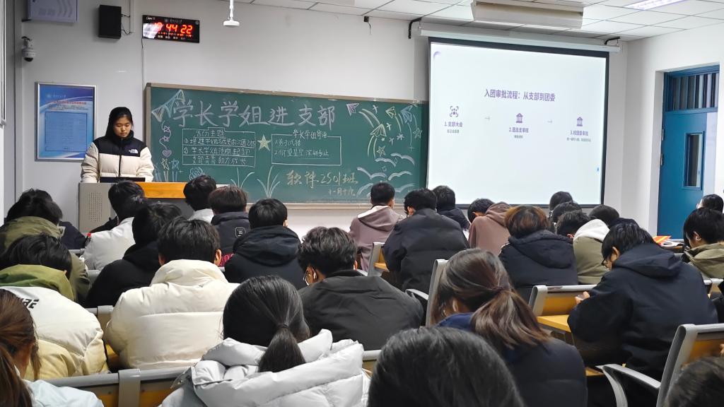 软件工程2501团支部邀请软件工程2401班的团支书毕艺菲同学,她系统讲解了团组织的架构与职能,介绍了入团入党的基本要求,并以详细的时间轴为脉络细致解读团员发展的关键流程。她的讲解不仅让新生团员们掌握了基础党务知识,还有效帮助新生理解团员的责任与义务、使其尽快融入团组织,为后续团支部建设打下坚实基础。