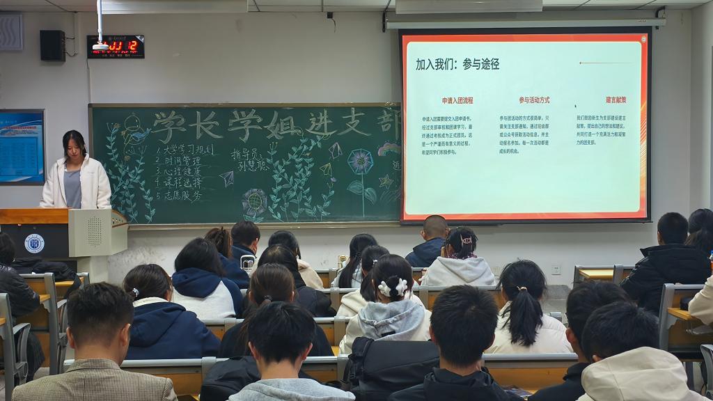 为进一步加强基层组织建设,帮助2025级新生团员尽快适应大学生活、熟悉团务工作,发挥高年级优秀学生的示范引领作用,增强团组织的凝聚力和战斗力,电子与信息工程学院于2025年11月1日到11月25日组织开展了“学长学姐进支部”主题团日活动。其中软件工程2501团支部,通信工程2502团支部,数据科学与大数据技术2501团支部积极响应学院号召,承办本次精品团日活动。