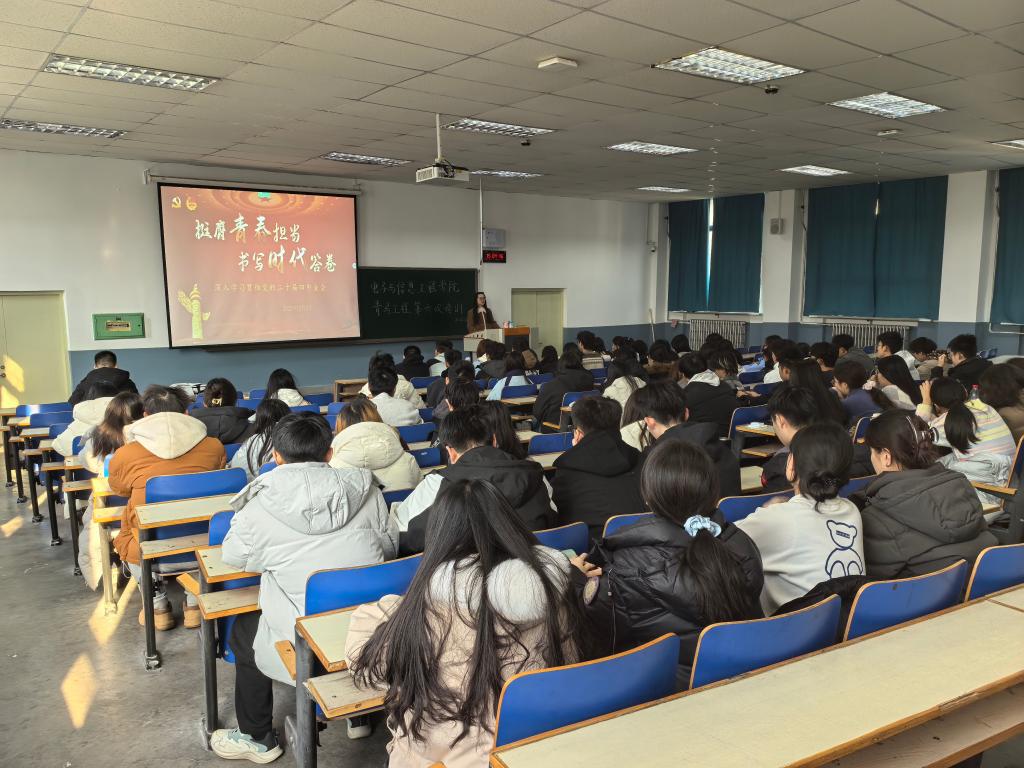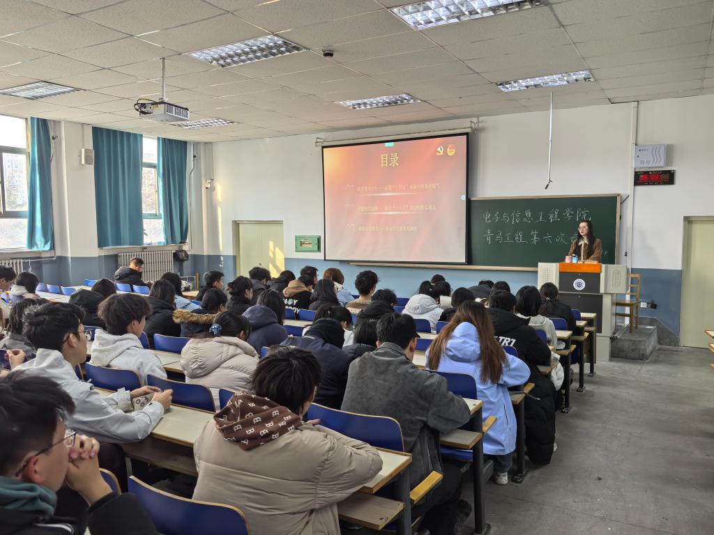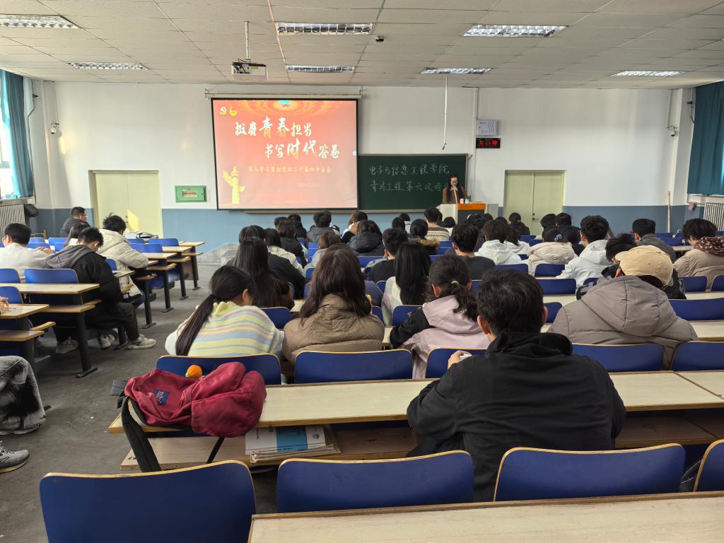 为积极引导全体“青马工程”学员与学生党员系统学习党的二十届四中全会精神,进一步明确新时代的奋斗目标,汲取奋进的精神力量,增强使命担当意识,2025年12月4日下午3时,电子与信息工程学院在第七教学楼1803教室组织第四期“青马工程”培训班同电子科学与技术专业党支部、计算机科学与技术第二党支部、通信工程第四党支部联合共建共学。本次活动以“挺膺青春担当,书写时代答卷”为主题,深入学习党的二十届四中全会精神,旨在推动党的创新理论入脑入心,激励青年学子自觉将个人发展融入国家发展大局。