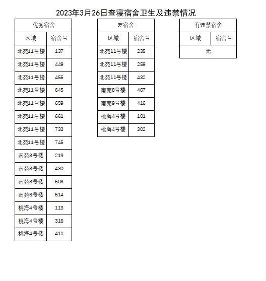 进一步加强学生宿舍安全管理,消除安全隐患,维护校园安全稳定,营造安全、卫生、整洁、温馨的生活环境,学院于3月26日对学生宿舍进行宿舍检查,现将宿舍检查结果公示如下: